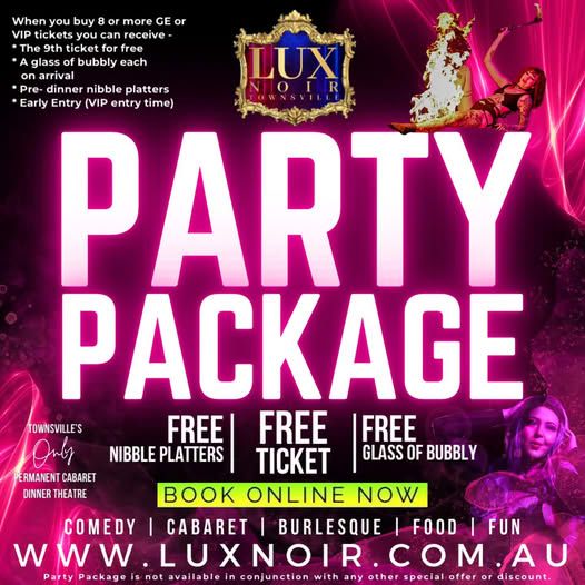 To book your Lux Noir package, just buy your tickets online then contact us directly via Facebook DM or on 0432 057 224 so we can attach the package you have chosen to your booking!